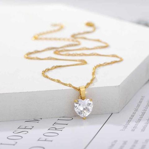 Hình Trái Tim Đơn Giản Với Mặt Dây Chuyền Zircon Trang Sức Vòng Cổ Bằng Thép Không Gỉ Chuỗi Vòng Cổ Quyến Rũ