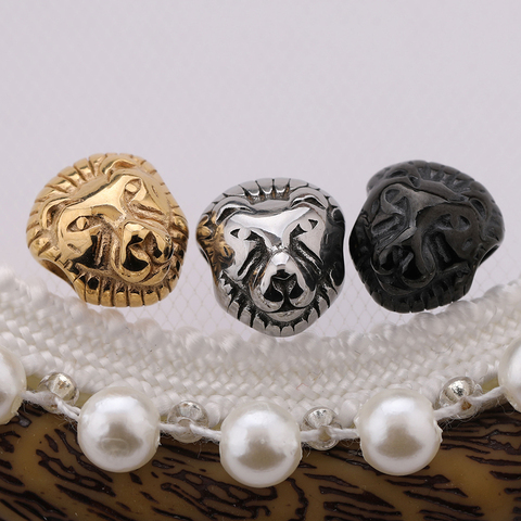 Vàng Bạc Đen Mạ Thép Không Gỉ Lion Head Bead Charms Cho Bangle Vòng Đeo Tay